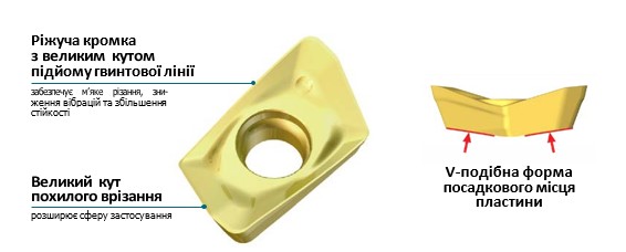 Головна особливість конструкції інструмента цієї серії — використання змінних багатогранних пластин