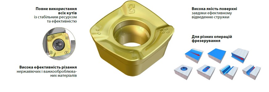 • Пластини забезпечують стабільні умови різання при обробці нержавіючих сталей та інших